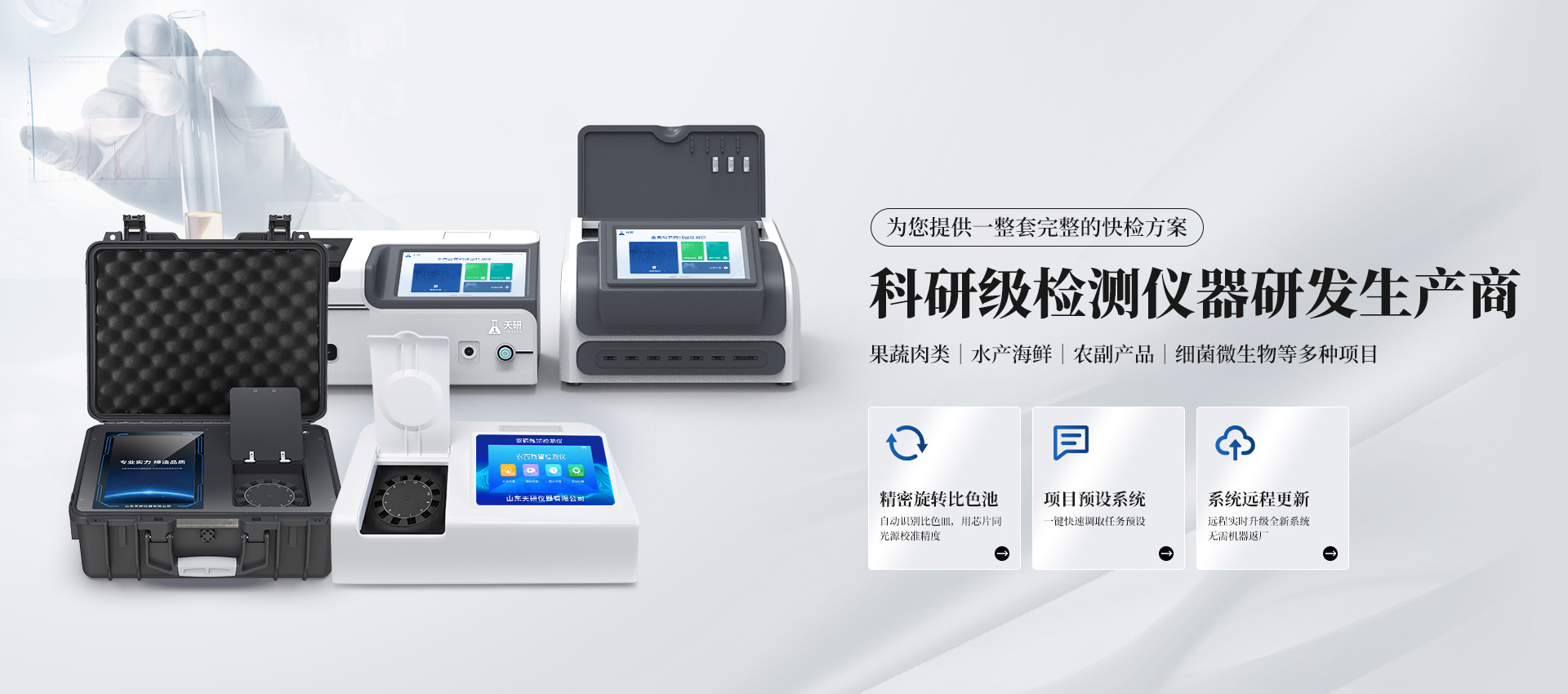 食品安全檢測儀 農(nóng)藥殘留檢測儀 獸藥殘留檢測儀 細(xì)菌微生物檢測儀 食品添加劑檢測儀 食安現(xiàn)場快檢箱 土壤養(yǎng)分檢測儀 植物生理檢測儀 更多